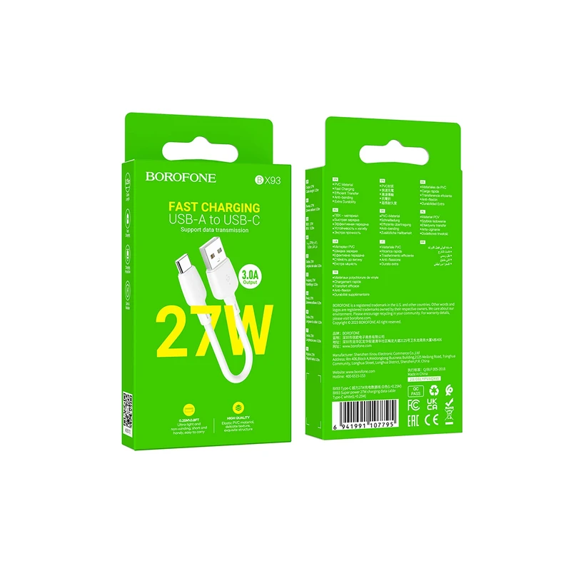 کابل تبدیل USB به USB-C بروفون مدل BX93 27W طول 0.25 متر